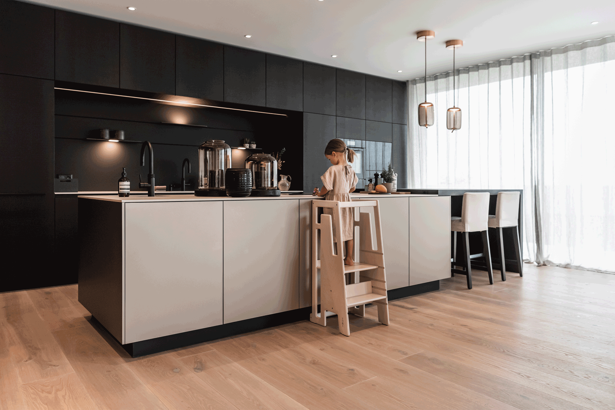 “Super einfach zusammenzubauen, flexibel bei der Grössenverstellung, richtig stabil und unser Sohn kann selber so oft hinein- und hinaufklettern wie er möchte. Und stylisch ist er auch noch! Wir könnten den Tuki-Lernturm nicht mehr wegdenken.”