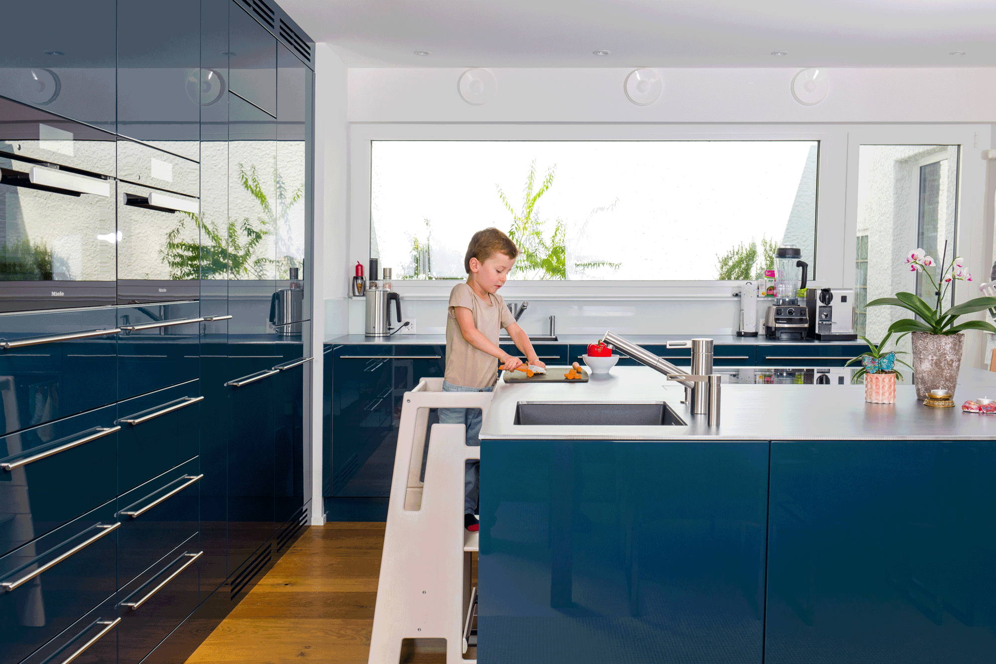 “Mit dem Tuki Lernturm ist unser Sohn (18 Monate alt) beim Kochen und Degustieren voll dabei.”