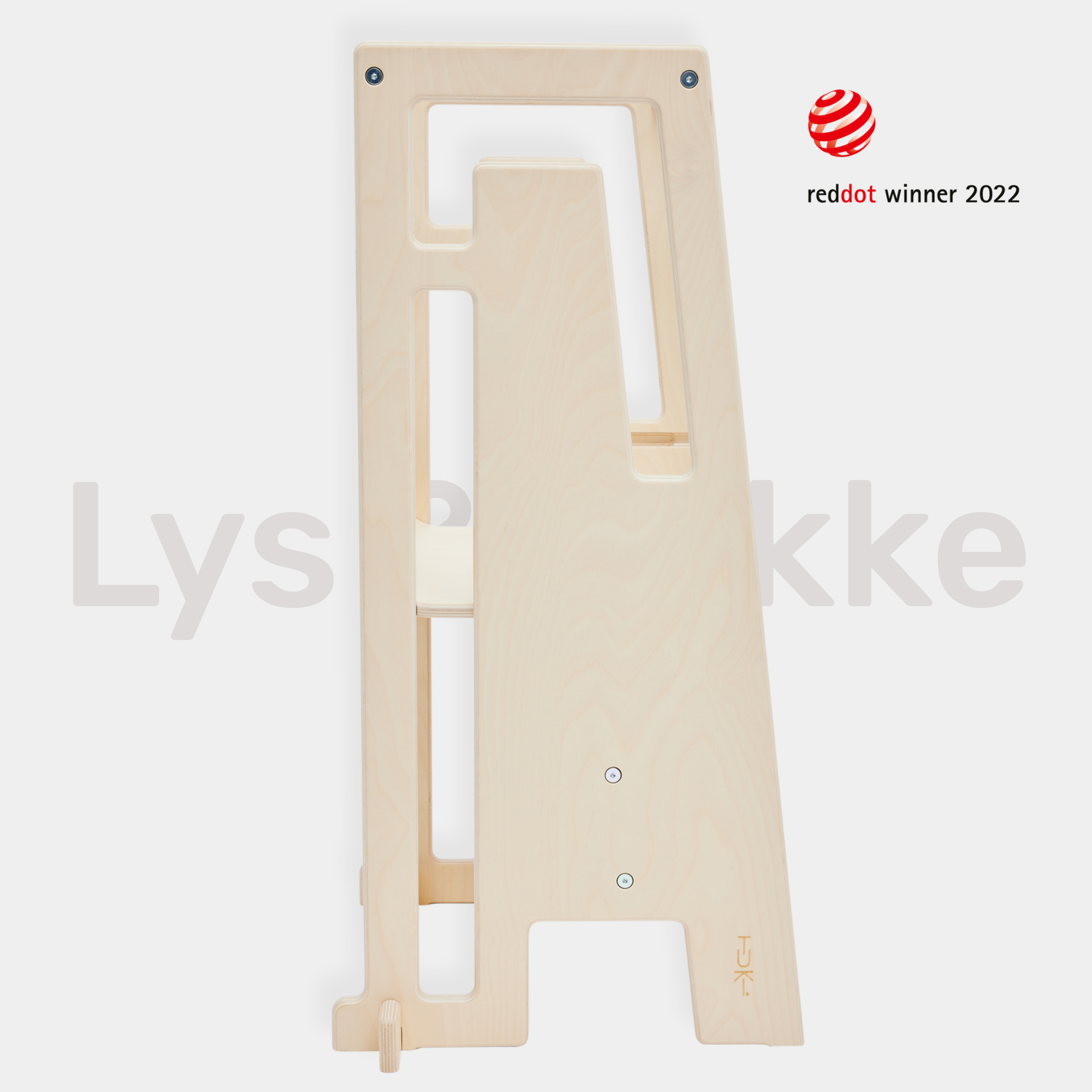 Die unverkennbare und zeitlose Form vom Tuki® Lernturm wurde in enger Zusammenarbeit mit dem Schweizer Möbeldesigner Stefan Westmeyer entwickelt und aufgrund seines praktischen Designs mehrfach ausgezeichnet, unter anderem mit dem Red Dot Design Award.