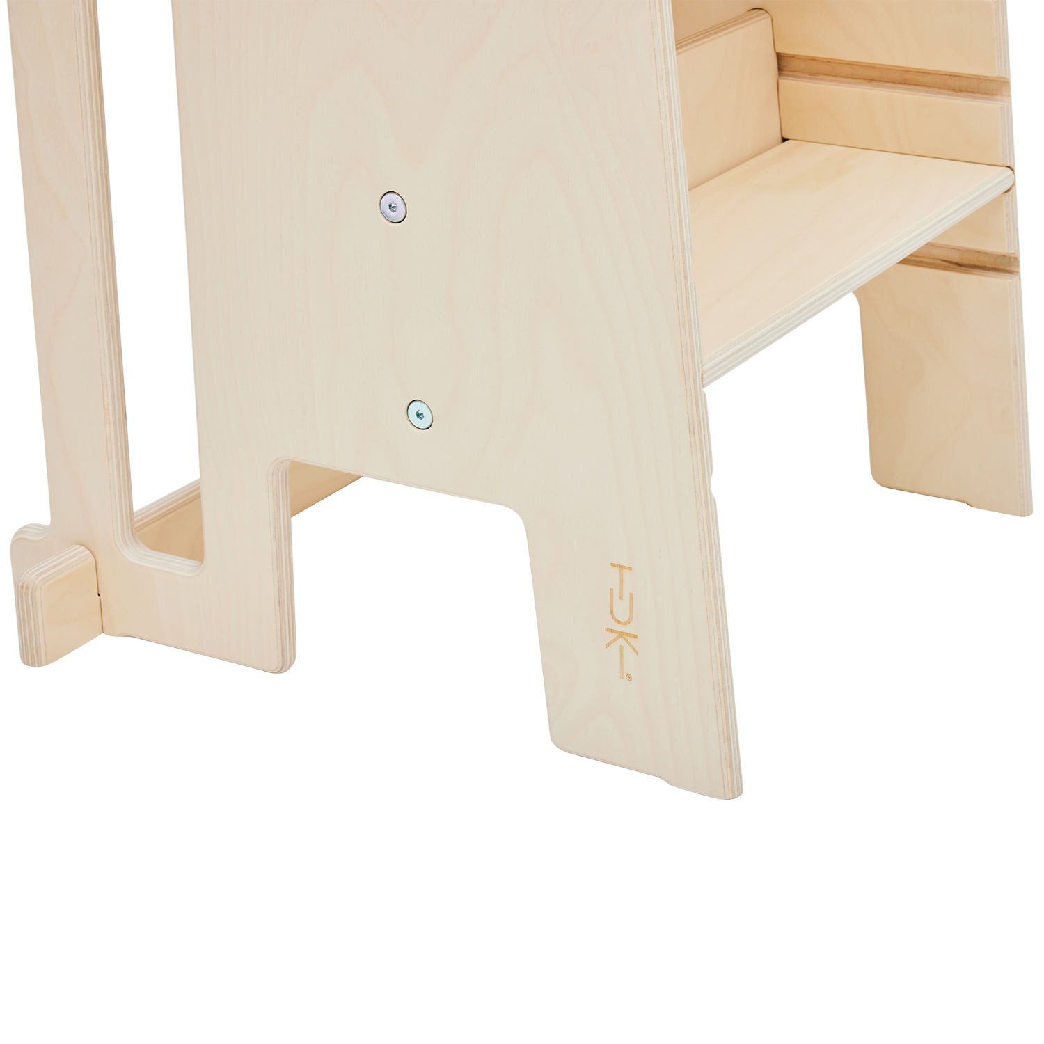 Der Tuki® Lernturm ist mit nur wenigen Handgriffen auf 3 Stufen höhenverstellbar. Er passt sich dadurch der Grösse des Kindes an und fördert bereits im frühen Alter eine gesunde Körperhaltung.